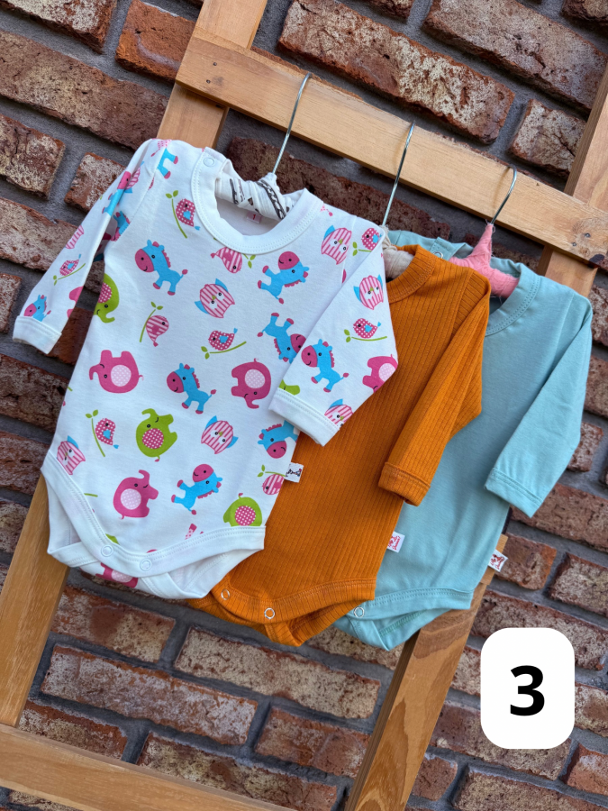 Este increíble pack de 3 bodys es la elección perfecta para mantener a tu bebé cómodo y acogedor. Diseñados con materiales de alta calidad, nuestros Bodys son suaves al tacto y transpirables, ideales para la delicada piel de tu pequeño.