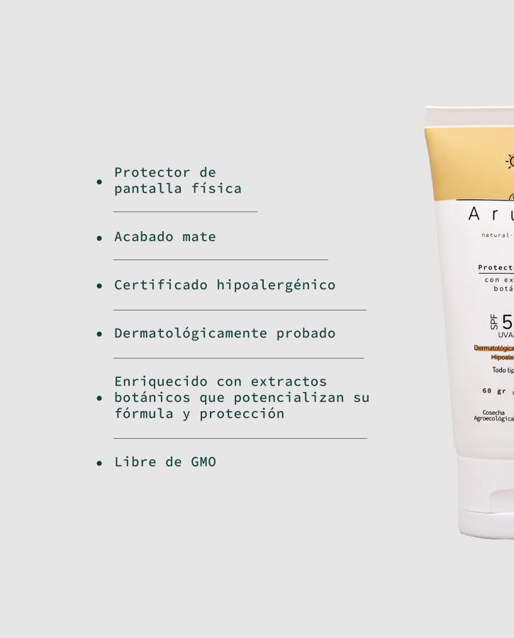 – Fórmula con extractos botánicos minerales de pantalla física.